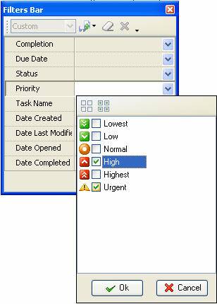 "Filter by Priority" allows you to display only tasks with required priorities.