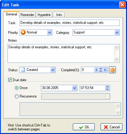 2. Click the button on the toolbar, or select the Tasks\Edit Task menu item, alternatively press the Enter key on your keyboard or double click the selected task.