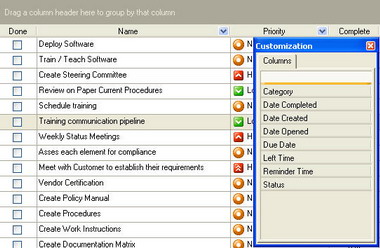 - Tasks may be sorted using filters at the head of each column. Sorting of columns can be made by use of the stylized triangle in the header of each column.