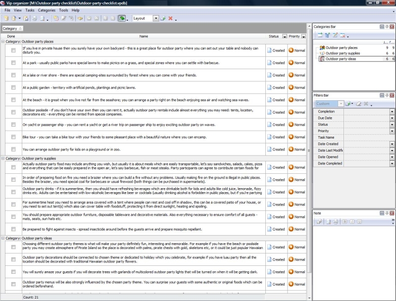 This outdoor party checklist is created to help those who have hard times while doing outdoor party planning. No matter if you have outdoor banquet dedicated to some event or just usual picnic to celebrate good weather – it is a great and healthy way to gather your friends, family, neighbors or co-workers in pleasant open air environment. This outdoor party checklist is about organizing such a party in terms of useful tips, recommendations and ideas.