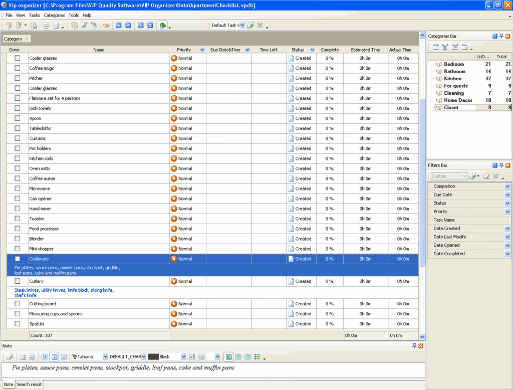 Apartment Checklist is a 'to do list' for you to remember what should be checked before you enter a new apartment. Use this Apartment template as a checklist to examine each room, discover each breakage and inform the landlord about it.