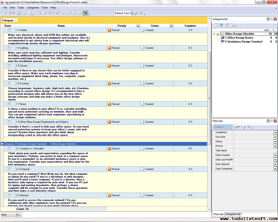 It is important to develop and implement an office organization strategy that helps re-organize your workplace at the office of your company. The given below office organization checklist is designed to show how your office workplace can be organized in order to maximize your productivity and reduce an amount of time wasting.