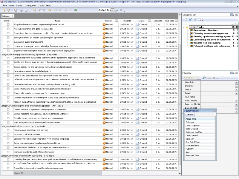 Managing outsourcing project checklist
