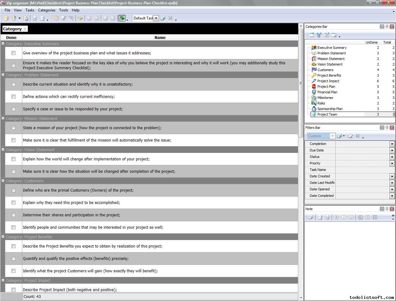 Project Business Plan Checklist