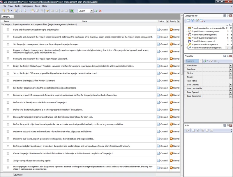This Prince2 Project Checklist is created to help people in applying this famous methodology used by UK government (as the project management standard for public projects). With a help of this checklist you can learn the main processes and activities included into Prince2.