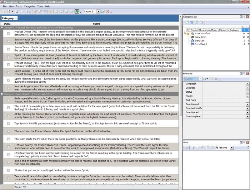 This Scrum Checklist is an overview that can be used to learn this famous agile methodology of project management, which is widely and effectively used in software development (and also in many other industries as well). This Scrum Checklist explains the Scrum basics such as roles, essentials of the workflow of this method (actions to complete on every Sprint and Daily agenda), some pieces of “Scrum how to” advice, etc.
