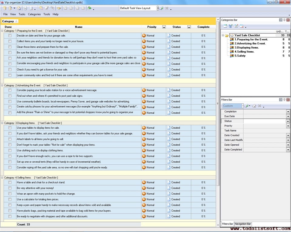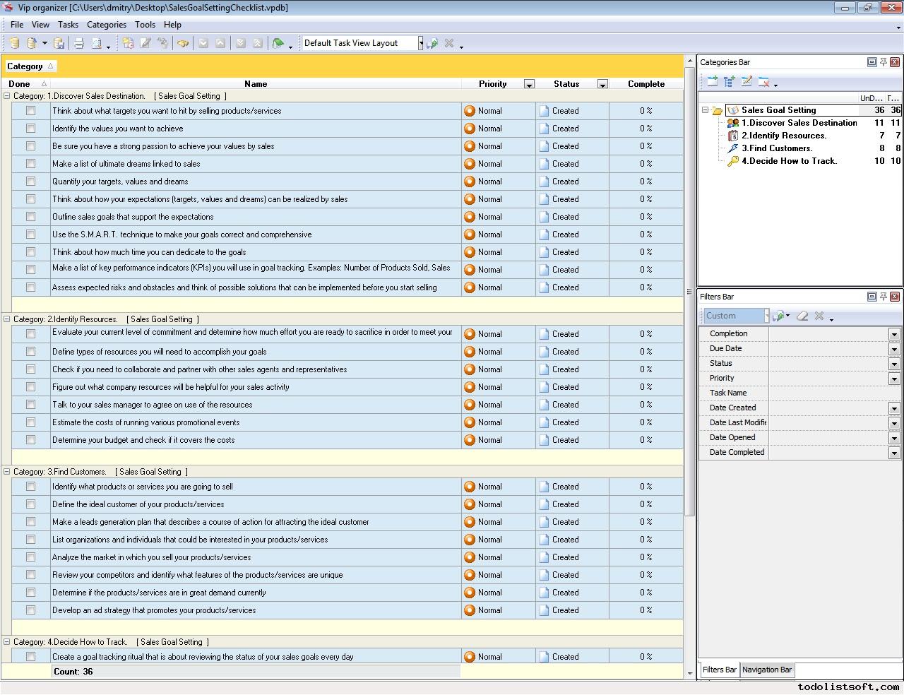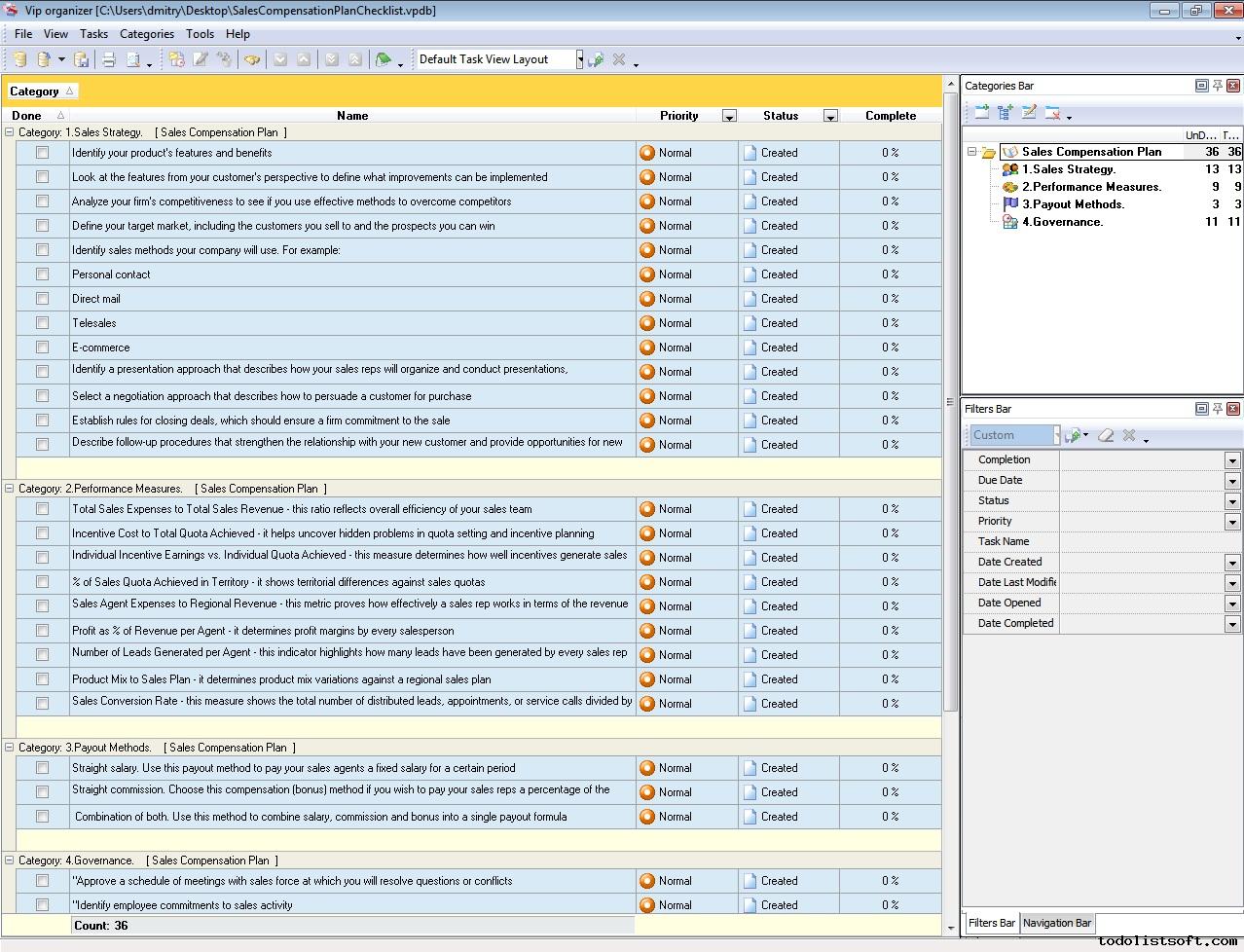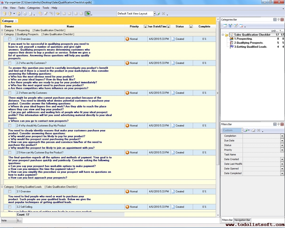 This Strategic Sales Plan Checklist explains what actions need to be done for creating a sales plan based on strategic business goals. This document is designed for sales managers, market analysts and other professionals involved in sales management. It is recommended to use the checklist with VIP Organizer software.