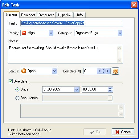 Later you can always get back to your task list and sort, filter, prioritize it, set status, dates, reminder,