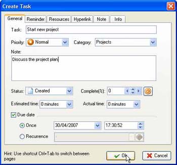 To create such tasks you need to check the Due date option in the Create Task dialog, or to set a recurrence for the task you need to check Due Date option in the Edit Task dialog.