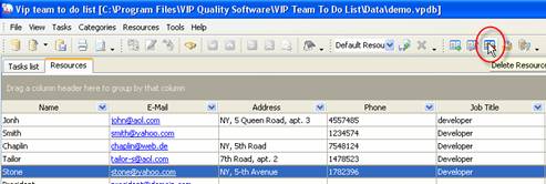 Resource information may be changed, for example resource John changed his address. To edit existing resource information click on ‘Edit Resource’ button on Resources toolbar, press ‘F4’ key or double click on required resource. Enter required changes and click ‘Ok’.