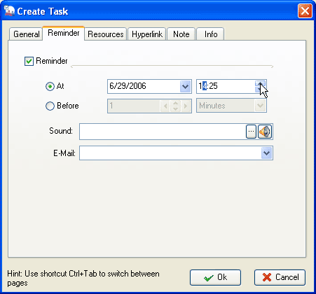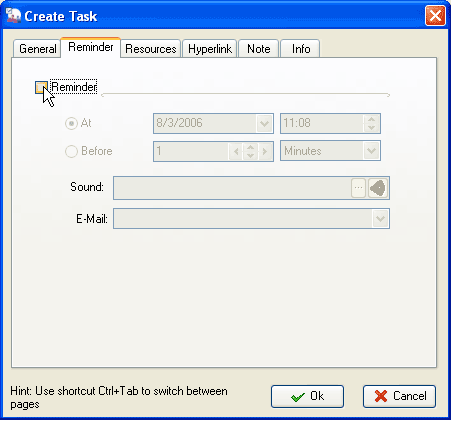 If you want to be reminded at a certain task you should select a date and time when radio button is selected. |