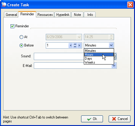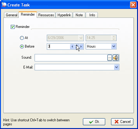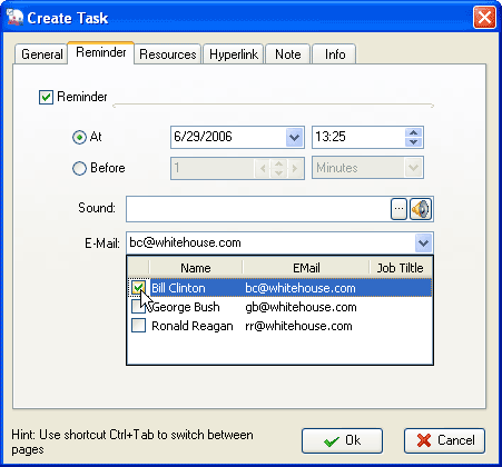 If you use VIP Simple To Do List or VIP Organizer, you should enter emails, while in VIP Team To Do List you can select them from Resource drop down list. Don’t forget to set SMTP (Tools -> Options) beforehand. |