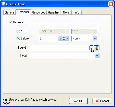 You have set reminder to receive a desktop message. If you want the program to play a sound or your favorite song as alarm, you should select the music file from its location. |